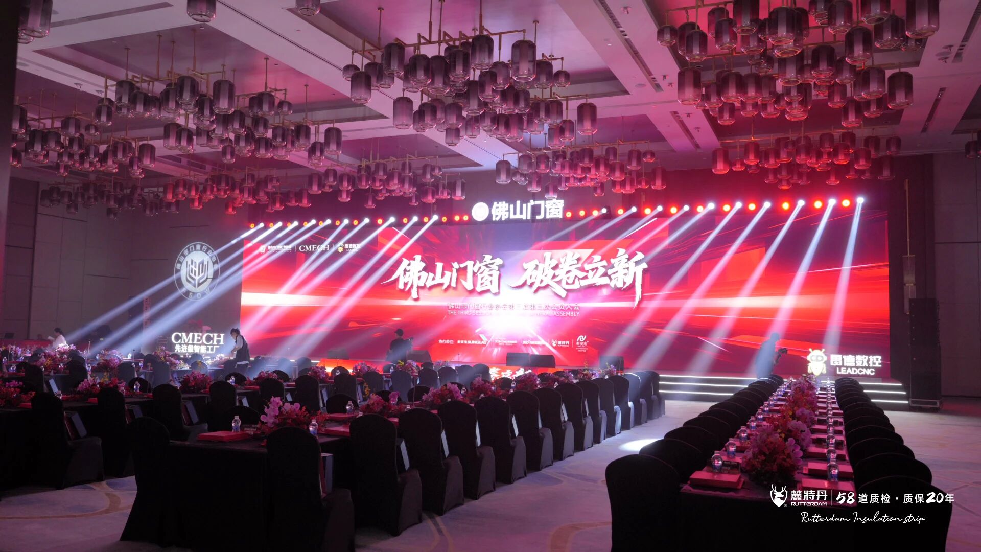 这份产品力的背后,是麓特丹对 “品控常态化” 的极致恪守 —— 从原料筛选、生产加工到成品出厂,全程贯穿高达 58 道严格质检流程,每一道工序都力求精准,确保每一根隔热条都达到行业顶尖品质标准。展会期间,众多参观者驻足麓特丹展位交流洽谈,细致观摩产品细节,深入了解品牌在材料研发升级、结构优化设计与生产工艺革新上的创新突破,对产品实力给予高度认可。 开幕环节:行业领袖致辞,点燃奋斗豪情 大会在庄严的奏唱国歌仪式中正式拉开帷幕。随后,佛山市门窗行业协会各领导依次登台发表开幕致辞,围绕佛山门窗行业的发展现状、面临机遇及未来方向展开分享。 其中,会长朱福庆在致辞中发出豪情宣言:“我们是门窗人,我们作为门窗人感到自豪!” 这句饱含行业情怀与责任担当的话语,精准道出了全体与会同仁的共同心声,瞬间点燃现场氛围,赢得全场经久不息的热烈掌声。而会长黄维寿以 “安全不止是红线,更是门窗行业破卷之路的起点” 的论断,为行业发展指明方向;会长李钧洪提出 “从高速发展转向高质量发展,从企业竞争走向生态共赢” 的理念,则为行业转型提供了新思路。这些高屋建瓴的发言,共同勾勒出佛山门窗行业砥砺前行的壮阔图景。 未来展望:麓特丹与行业共赴新征程