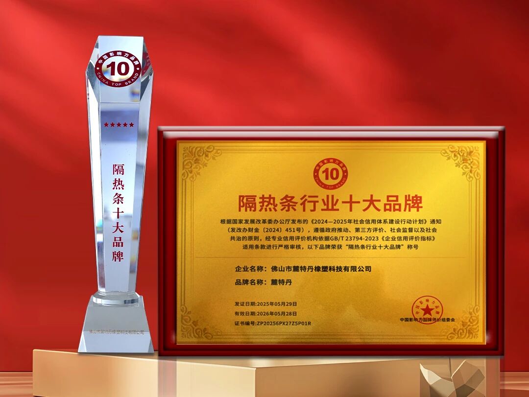 近日,麓特丹隔热条凭借高品质的市场口碑与技术革新能力,获中国影响力评价品牌组委会授予2025“隔热条行业十大品牌”荣誉。该荣誉历经百万消费者票选及近百个隔热条品牌企业激烈角逐,从产品性能、用户信赖、品牌价值等多维度综合评定,标志着麓特丹品牌在市场发展中获得广大用户和行业权威的充分认可。